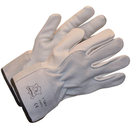 Työsormikas, kestävä naudannappakämmen, nautahaljasselkä, vuoriton. Koko: 11. 12 paria nipussa, 120 paria laatikossa.