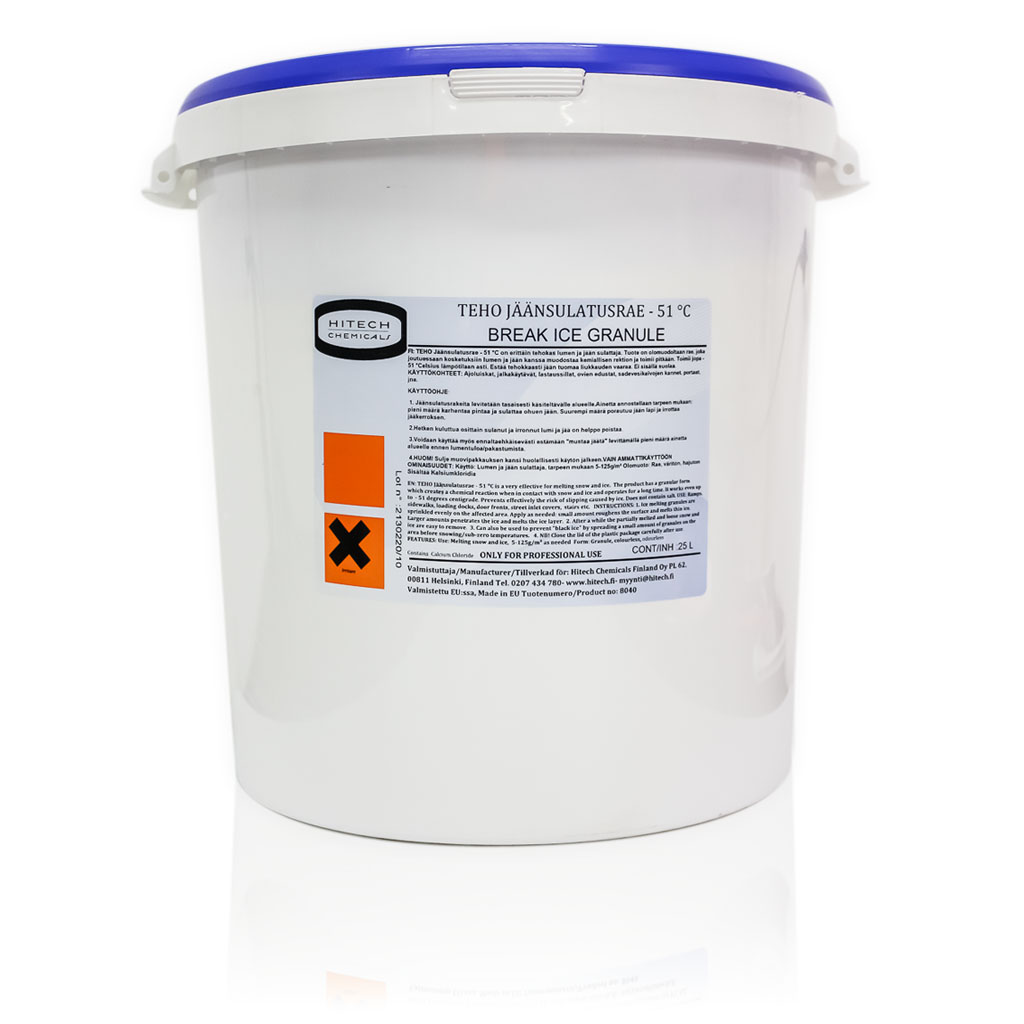 Tuote on olomuodoltaan rae, joka joutuessaan kosketuksiin lumen ja jään kanssa muodostaa kemiallisen rektion ja toimii pitkään. Toimii jopa – 51 ° C lämpötilaan asti. Estää tehokkaasti jään tuomaa liukkauden vaaraa. Ei sisällä suolaa.
