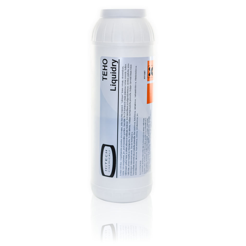 - Sirottele jauhetta käsiteltävään kohteeseen ja anna vaikuttaa, kunnes aine muuttuu puolikiinteäksi geeliksi/hyytelömäiseksi. Paksumpien nesteiden osalta imeytymistä voidaan nopeuttaa sekoittamalla nestettä ja TEHO Liquidry jauhetta esim. harjalla.