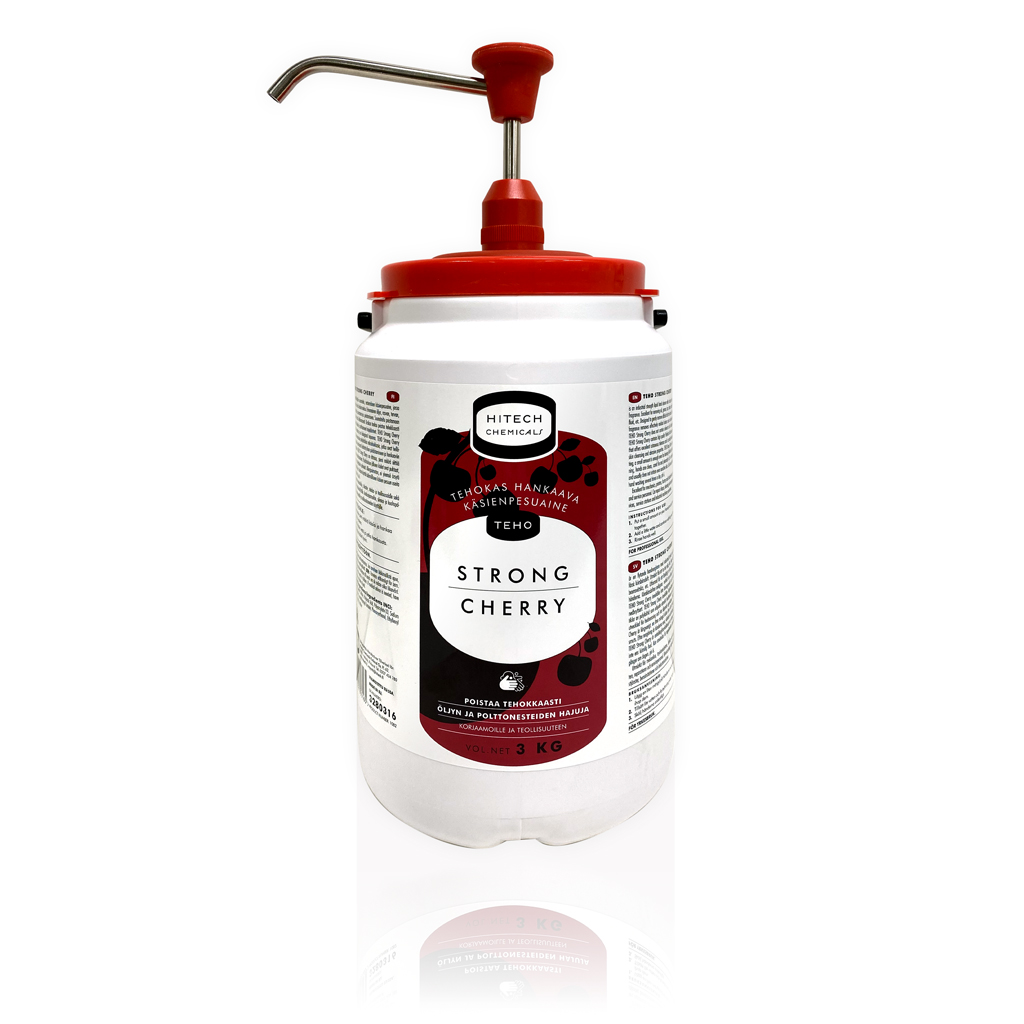 TEHO Strong Cherry on ammattikäyttöön suunniteltu, nestemäinen käsienpesuaine, jossa on puhdas ja raikas kirsikan tuoksu.